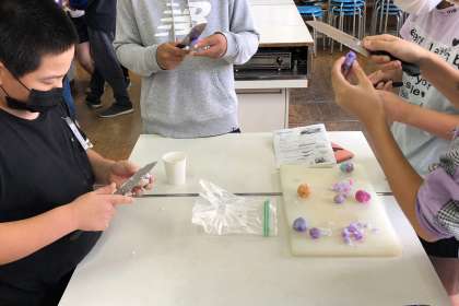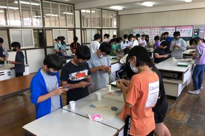 修学旅行先へのお土産として、宝石石鹸作りに取り組みました。