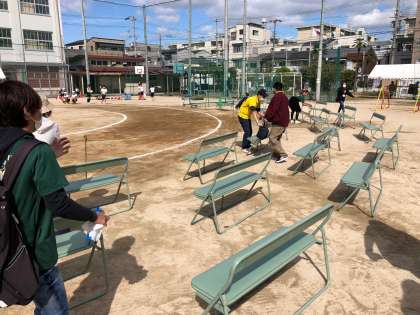学年の入れ替えの折には、職員とPTAの実行委員会のみなさんで椅子の消毒をしました。保護者のお帰りの際も、混雑することなく順序よく進んでいただきました。座席も一脚に一家庭として、ソーシャルディスタンスをしっかり意識してくださいました。保護者の皆様のご理解とご協力によりまして、無事滞りなく終えられましたことに、厚くお礼申しあげます。