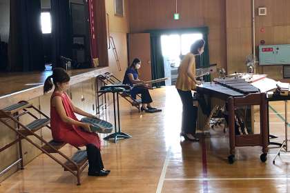 調理用のボール等を叩くと、意外とマリンバの音と馴染んでいました。