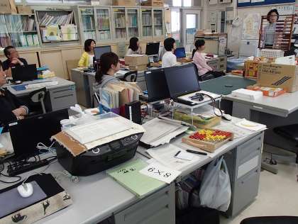 放課後職員室で教員研修会を行いました。八幡屋小学校の研究教科である算数科を中心に研修を深めました。