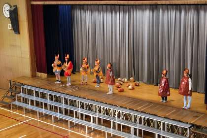 お道具、小道具、衣装を整えて、本番と見立てて演技しました。
