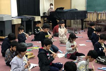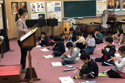 班ごとに、笛のテストをしました。