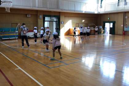 大縄跳びをしました。入るタイミングに苦戦しています。