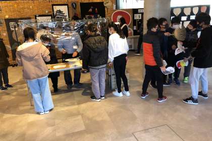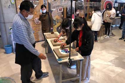 見学グループが挑戦中。