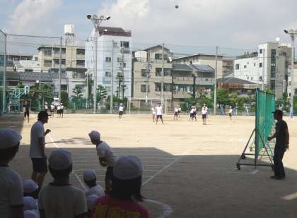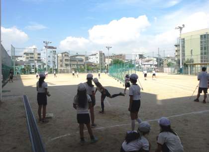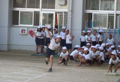ソフトボール投げは、個人差がありました。50Mぐらい投げた児童もいたそうです。