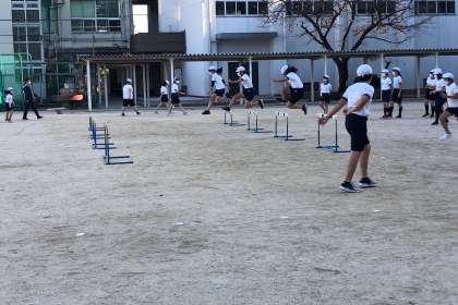 ハードルの高さを変えて、それぞれにあったハードルで練習をしました。