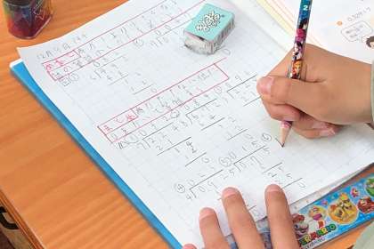 商が1より小さくなるわり算を学習しました。