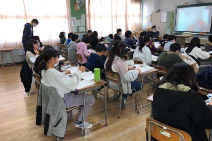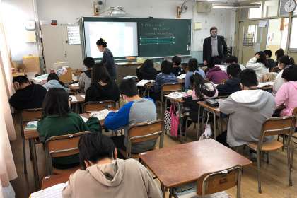 C-NETの先生に、学校行事を説明しました。