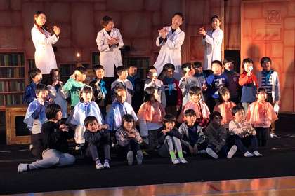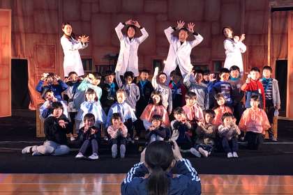 終わりに、3年生の子どもたちと劇団のみなさんとで、記念撮影とお礼の気持ちをお伝えしました。