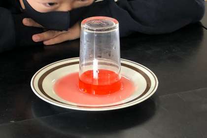 ロウソクの火にコップをかぶせると、どのような変化が見られるかの実験をしました。