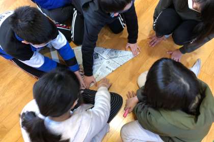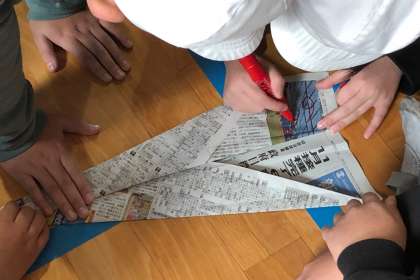 新聞紙で作った紙飛行機を飛ばす競技です。