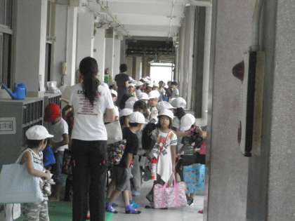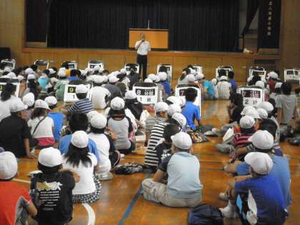 始業式の後、台風を想定した避難訓練が行われました。講堂に登校班で集合した後、班長の指示に従って集団下校をしました。本当に、起こったときも冷静に対処できるようになってほしいと思います。
