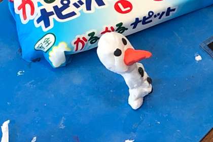 絵の具を混ぜた粘土で、思い思いの作品を制作中です。