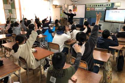 お二人の講師をお招きして、非行防止犯罪被害防止教室をしていただきました。