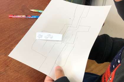 紙面に迷路を描いて、その下から磁石をあてて、紙面上にある紙を動かすことをしました。