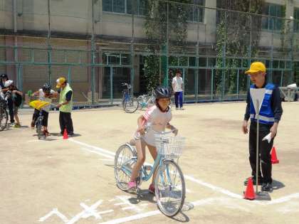 港警察の方から、小学生でも自転車事故で加害者の立場になることがあることを話されました。他の学校の事例ですが、小学校5年の児童が自転車事故をお越し、相手の方が意識不明の重体になったそうです。保護者には数千万円の賠償責任となったそうです。正しい自転車の乗り方は、自分も事故の相手側も守ることになります。万一の責任に備えて賠償保険に入ることも一つの方法ですが、まず、自転車の安全な乗り方を心がけることが大切です。