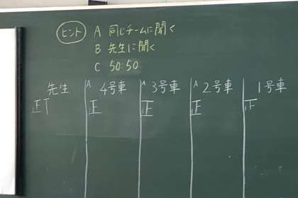 各教科から出題し、号車ごとに答えて点数を競い合いました。