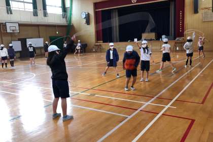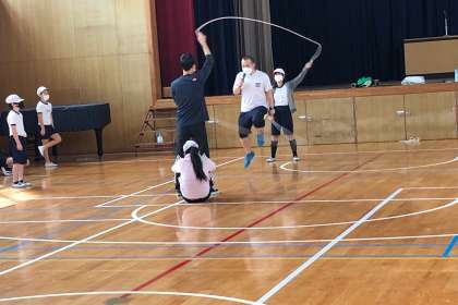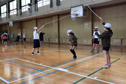 一本の長縄から2本の長縄跳びにチャレンジしました。