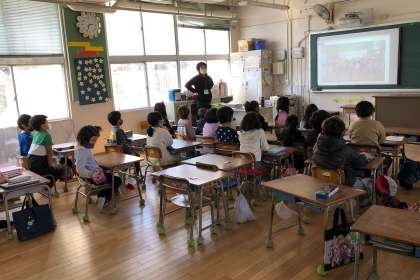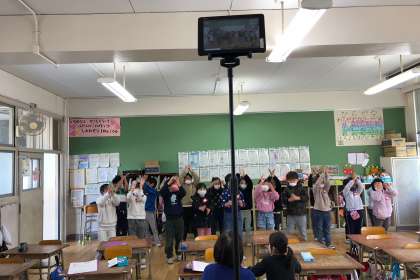 卒業を祝う会で披露する手話を交えた歌を、録画して出来栄えを確認しました。