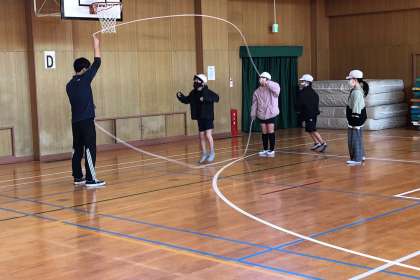 一本の跳び縄から二本の跳び縄に挑戦しました。跳び縄二本はかなり難しいようでした。