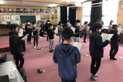 卒業式で5年生が歌う式歌をパートごとに練習をしました。