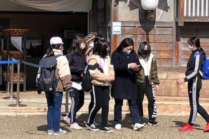 お化け屋敷から出てきて、「こわっ」