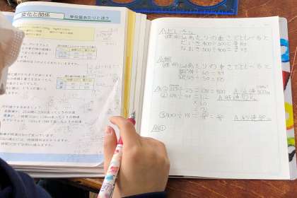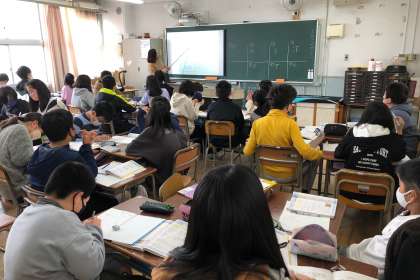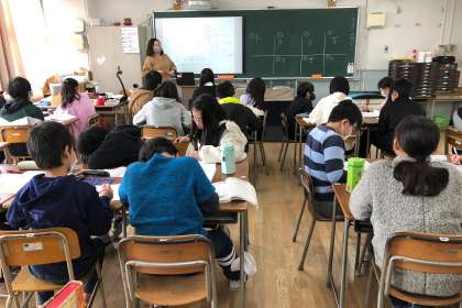 教科書の巻末にある問題を、班ごとに解いています。