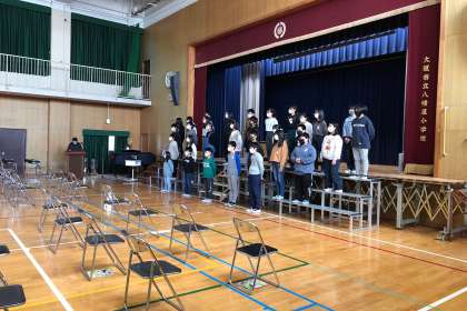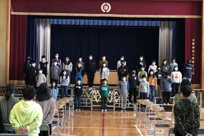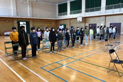 呼びかけ、式歌の練習をしました。