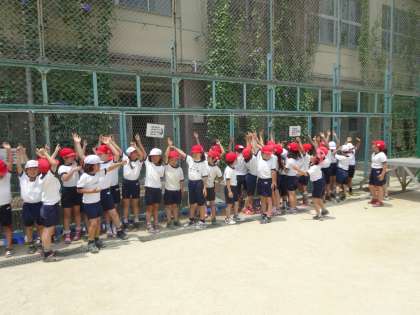 下:体育の授業後、ミストで大はしゃぎの2年生♪