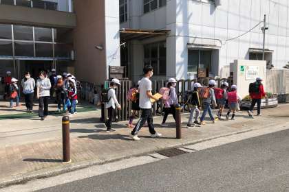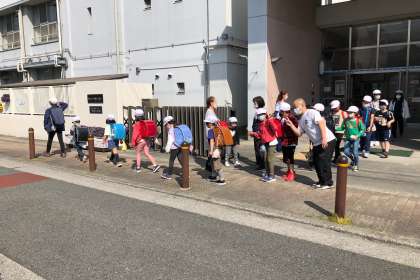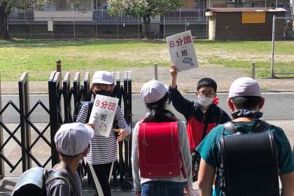 今年度、初めての地区ごとに集まる会をしたのち、集団下校しました。