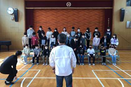 写真を撮るまでは、マスクをつけて学級写真を撮りました。