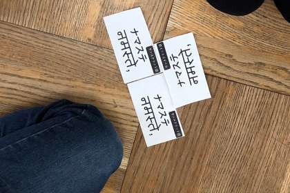 世界の挨拶の言葉について、同じ言葉カードを持っている人同士が集まりました。
