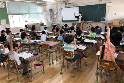 1年生になって、楽しいことは?子どもたちの反応は、教科の学習を答える子が多くいました。