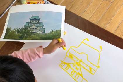 先日の遠足で行った大阪城を絵を描きました。