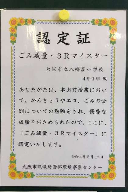 先週、パッカー車がきてくださり、ゴミの処理などの環境について学習したあと、認定書と一人ひとりにノートをくださいました。