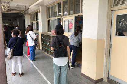 保護者の皆さんにご協力いただき、避難訓練の後、引渡し訓練を行いました。