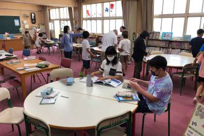図書室てわ、環境について調べ学習をしました。