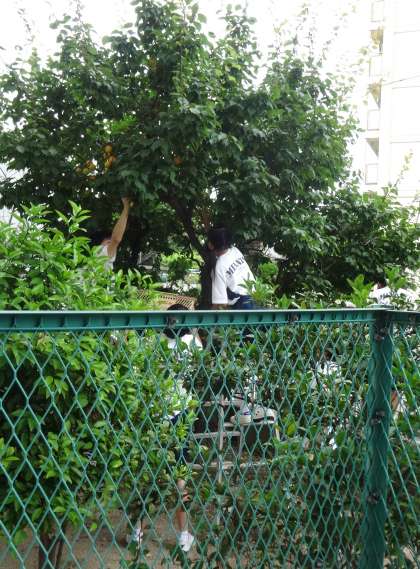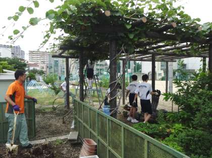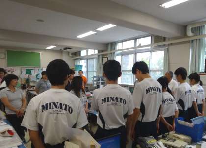 今日から2日間、港中学校の2年生の職場体験です。午前中は管理作業員さんの指導で作業をしました。