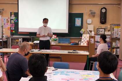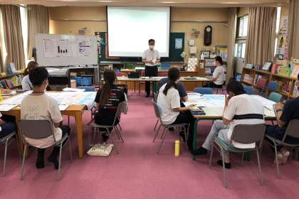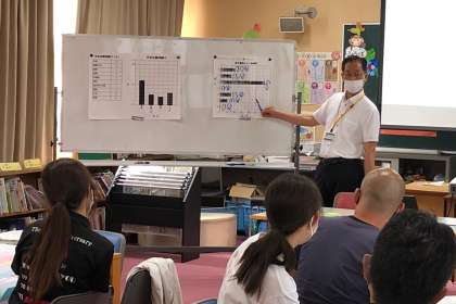 研究授業後、教育センターよりスクールアドバイザーの先生をお招きして、授業についての研究を深めました。