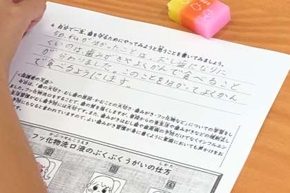 校医の先生と歯科衛生士の方が来てくださり、フッ化物洗口をしくださいました。