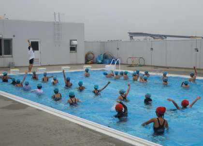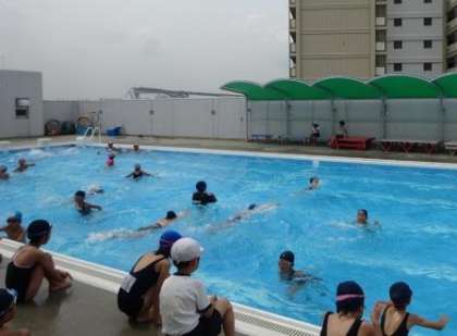 今日はプール開き。風が少し出てきて、天気も曇りだったので、少し寒そうでしたが、今年初めてのプールで楽しそうに泳いでいました。