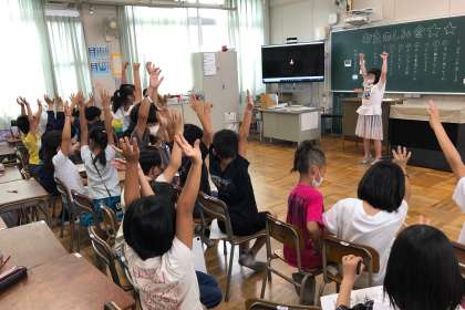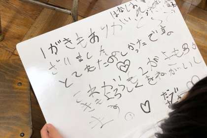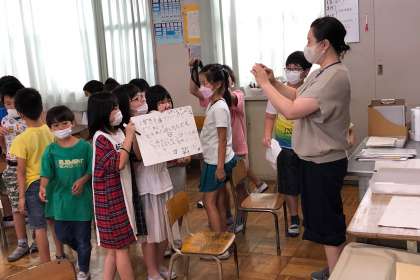 最後に、先生が作った1学期の子どもたちの活動を動画にまとめました。子どもたちからも、先生にお礼のメッセージを渡しました。