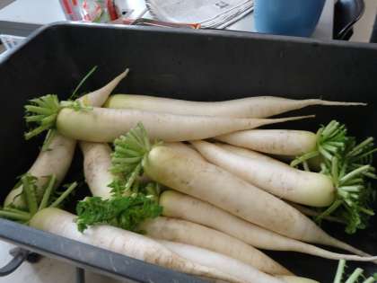 上:ダイコンを抜くのは、ナカナカ難しいです、折らずに抜くのはコツがあり♪