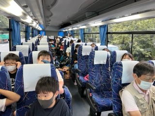 バス車内。高速道路から見える淀川、新幹線、飛行機。