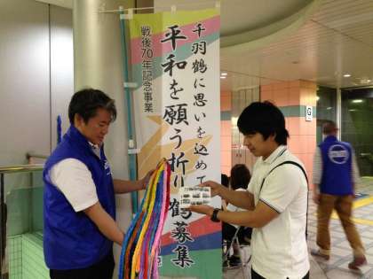 7/5 折り鶴を心斎橋駅に展示していただきました。