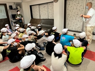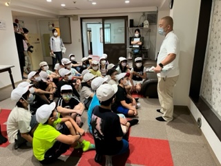 室長さんが部屋割り表などを貼ってくれた後、避難訓練をしました。