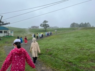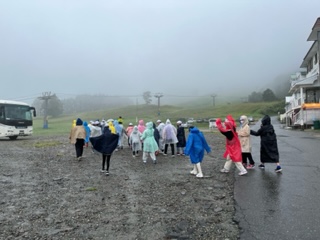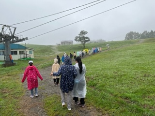 散策をしながらハチ高原のモニュメント前に行き、みんなで記念写真を撮りました。