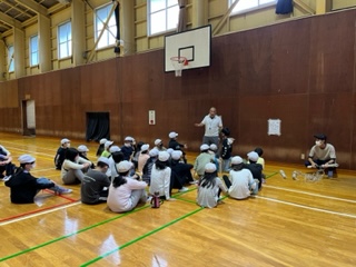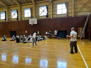 体育館に移動し、活動班対抗の大なわ大会をしています。