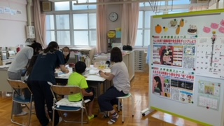 保健室では保健委員会がポスター作りをしていました。養護教諭を目指す教育実習生も一緒です。