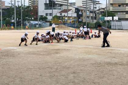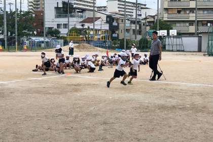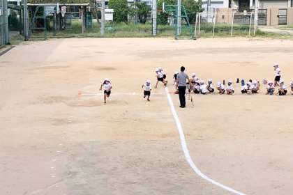 運動会で行う徒競走の練習をしました。